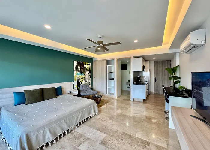 For those who prefer to cook, the apartment provides a fully furnished kitchen for preparing homemade meals. Mexican food is served in Birria Tacos y Consome only a few metres from the property. The nearest airport is Aeropuerto de Playa del Carmen, located 5 km from the 50 m² apartment. Also, take advantage of fitness classes to enrich your leisure. Guests will enjoy having an outdoor pool area on site.